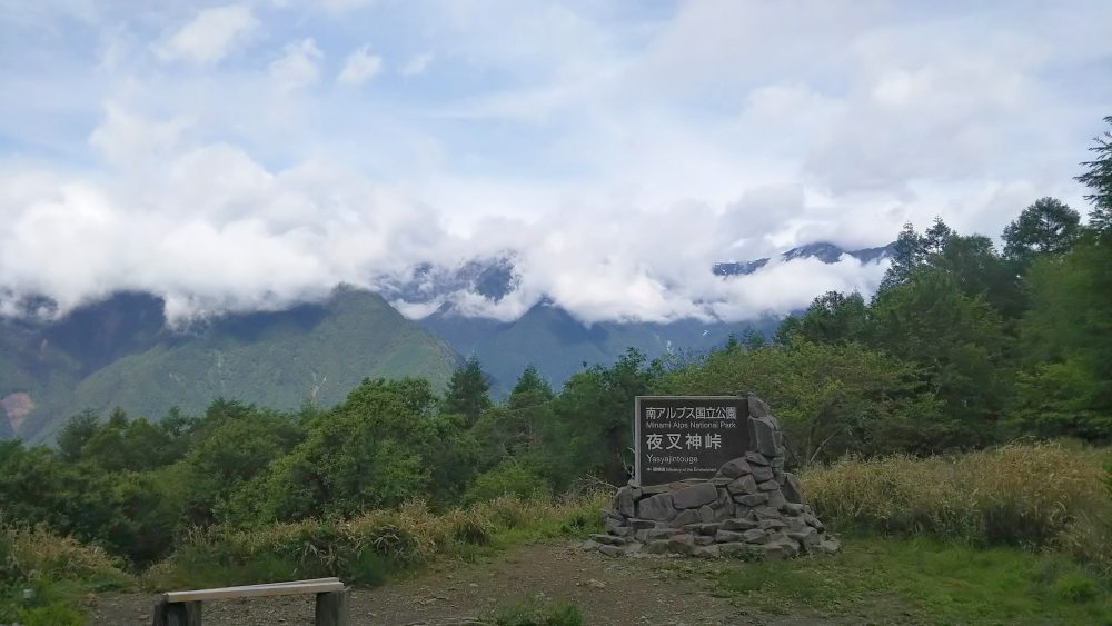 夜叉神峠に着くとやっぱり白峰三山はガスの中、残念。
