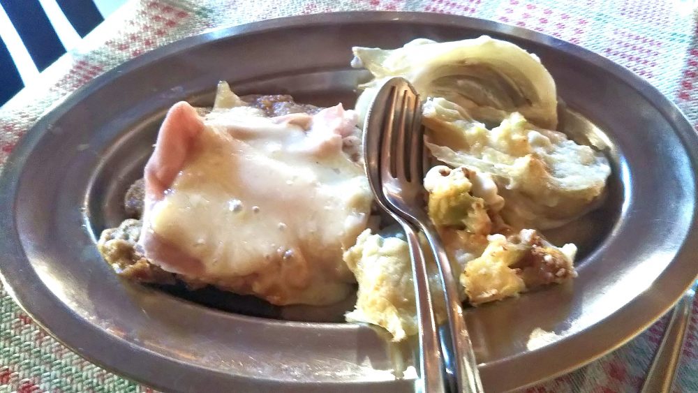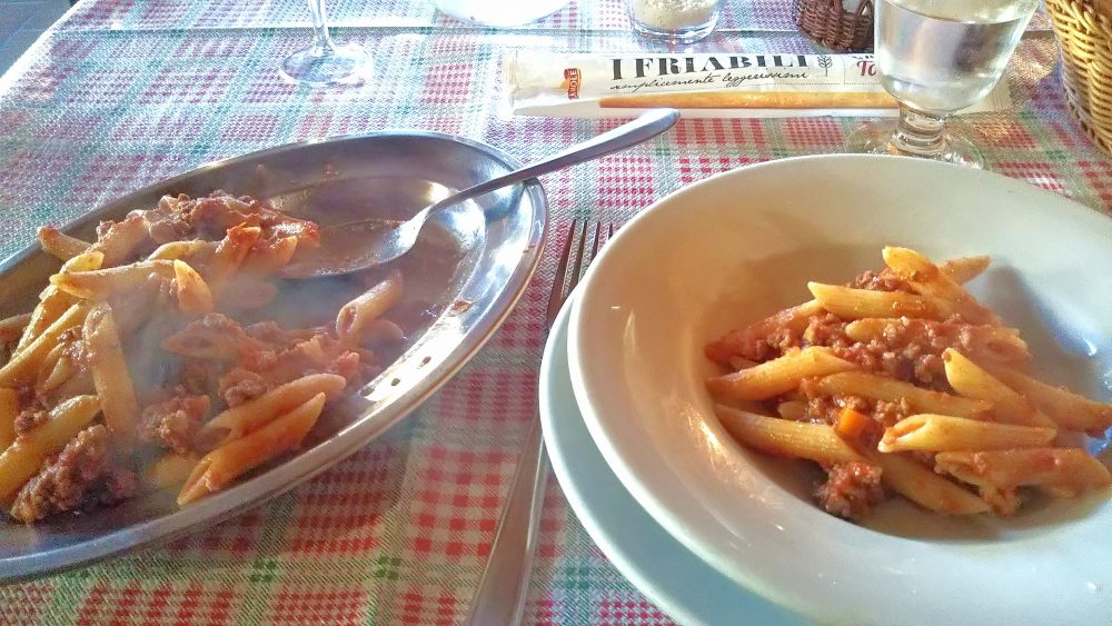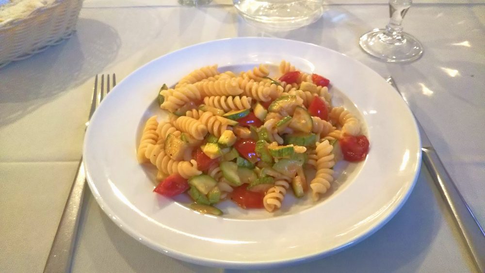 食事はパスタに、肉と野菜のメイン、デザートはパンナコッタ。