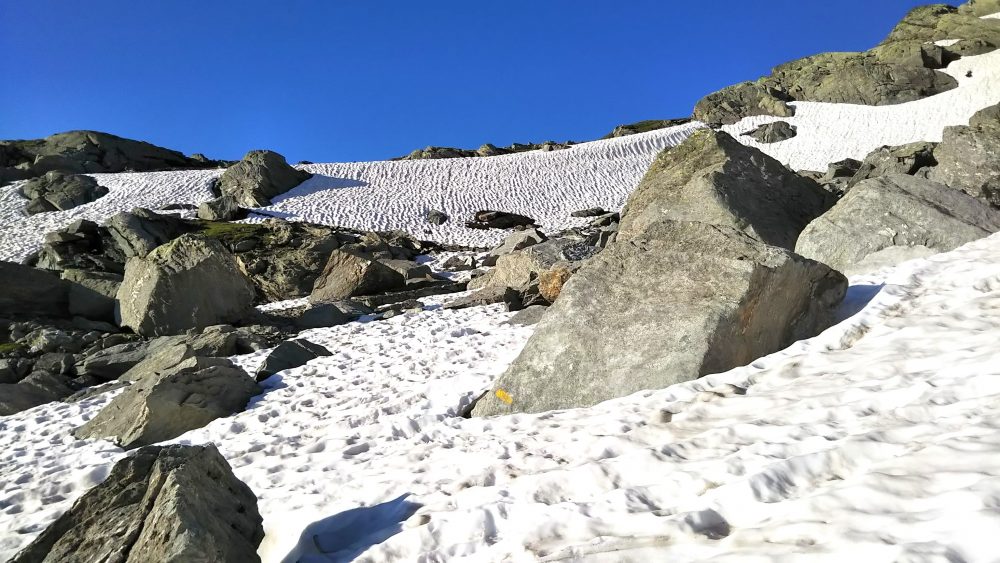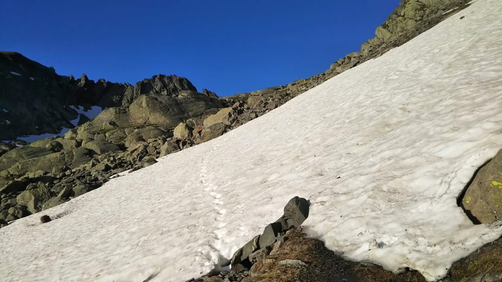 2,500mあたりで雪渓の通過が出てきて、その後は雪渓通過のオンパレード。