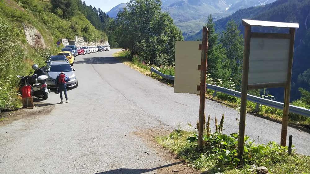 ロードに出て少し進むと、駐車スペースに車がたくさん停まっていました。