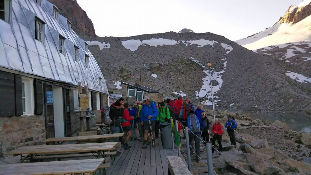小屋の前にはイタリアでは珍しい団体さんが出発するところ。