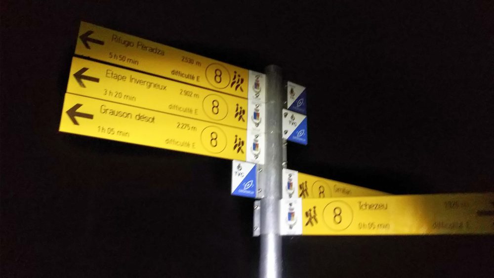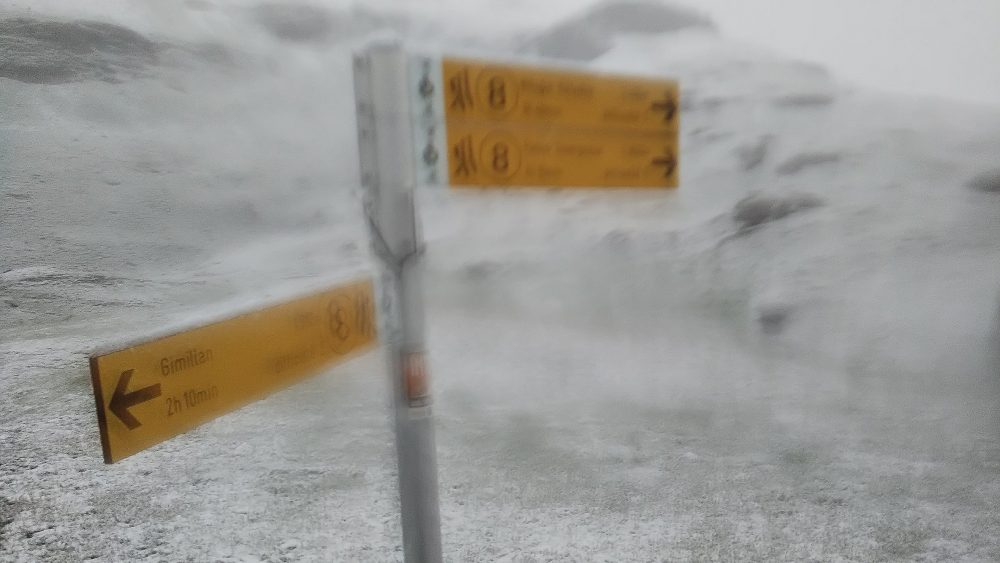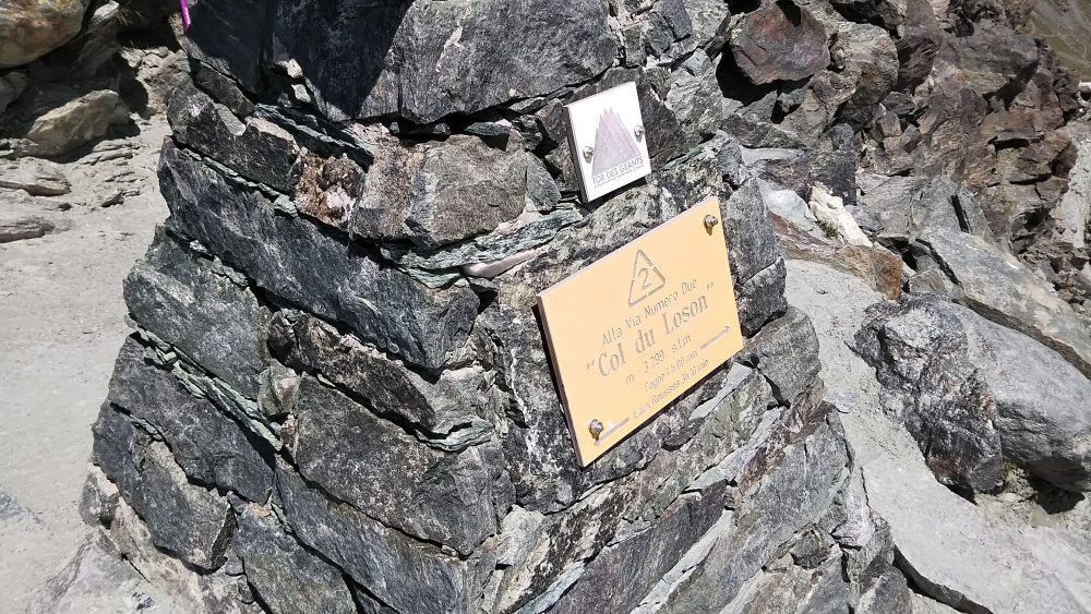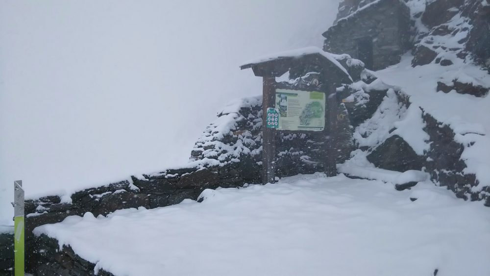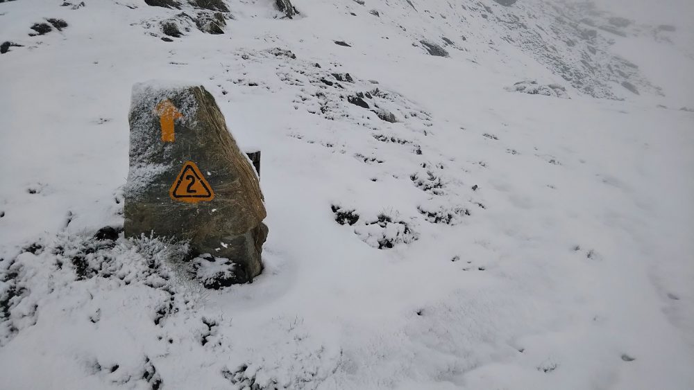 2,900mのPas des Invergneuxは手で雪をはらってようやく道標が見えました。