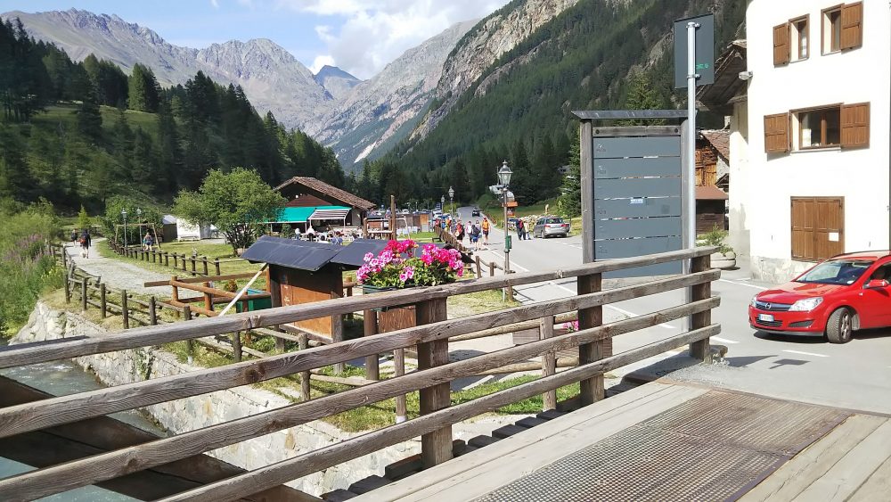 Champorcheまで2kmほど走ると、そこになんと路線バス!
