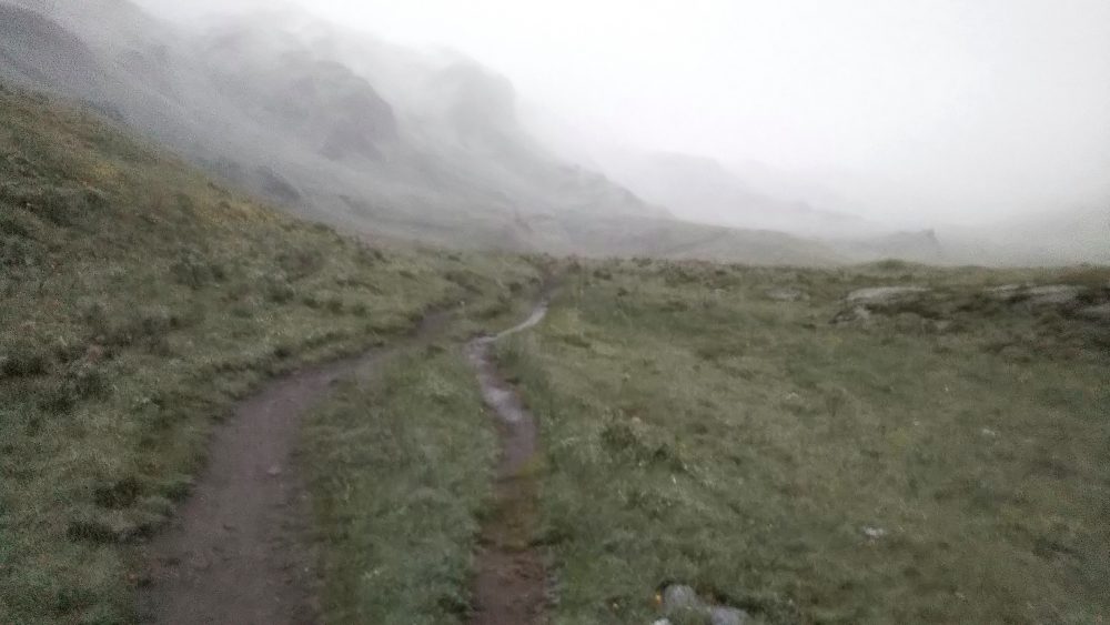 2,400mより下は雨、ビショビショになりながら淡々と進み、
