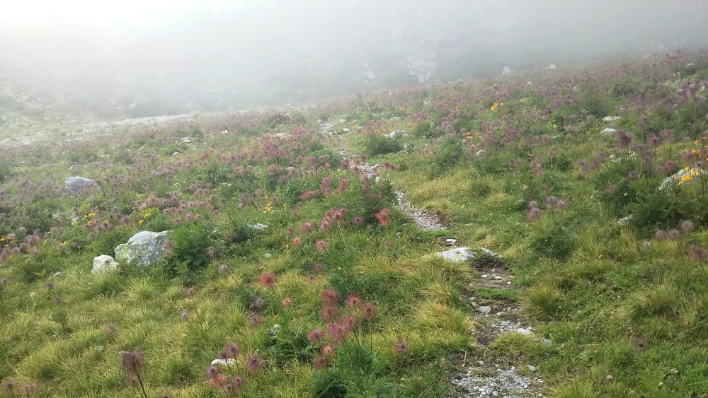 2,300mぐらいまで上がるとなだらかな登りの高原地帯に入りますがここで雨が…