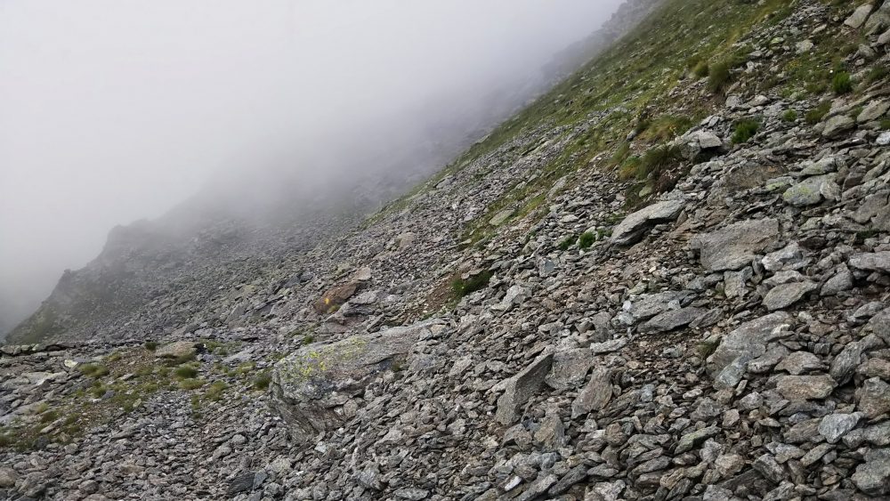 Col Barasson Occ.は何も見えず雨風強いので早々に下山開始。