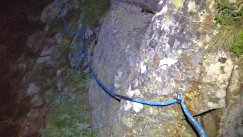 川を渡るといきなりの急登で切れ落ちたロープの場所も。