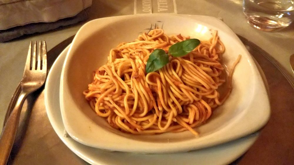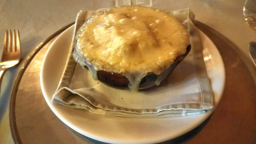夕食は迷わずポレンタとパスタにクレームブリュレをチョイス。