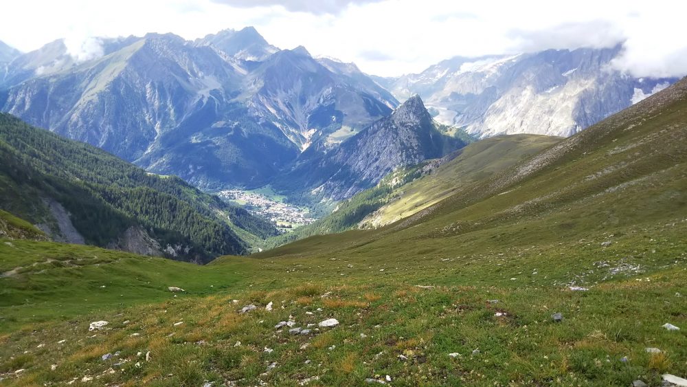 左側前方にはBionazやTORでも通るOyaceの街が見えます。