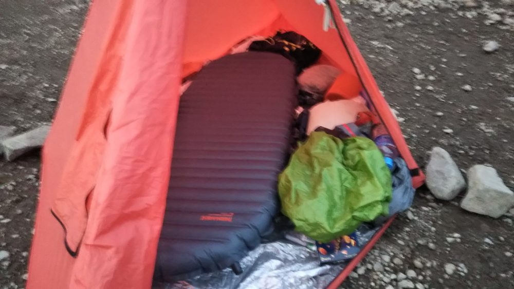 ウェアやシュラフ、フロアに敷いてるサバイバルシートとも滑ったりせず、