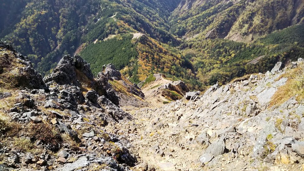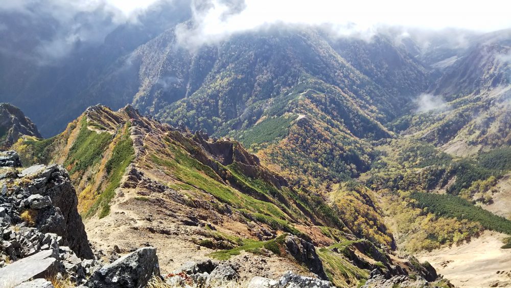 黄色く色づき始めた木々と、キレットの迫力が迫ります。