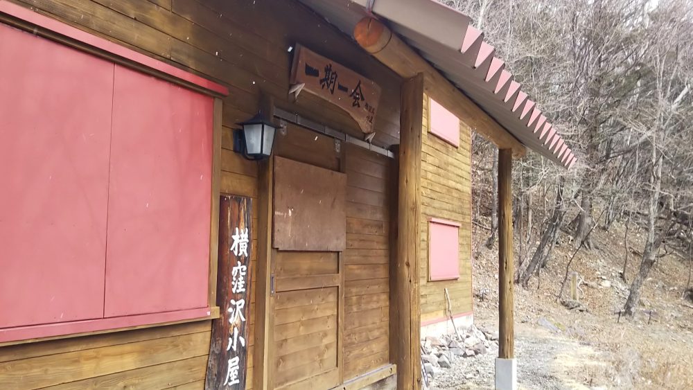 横窪沢小屋には2時間半で到着。雪が少ないので水がラクにとれました。