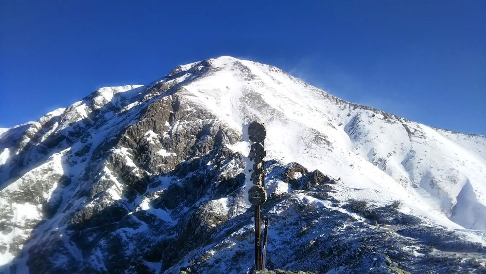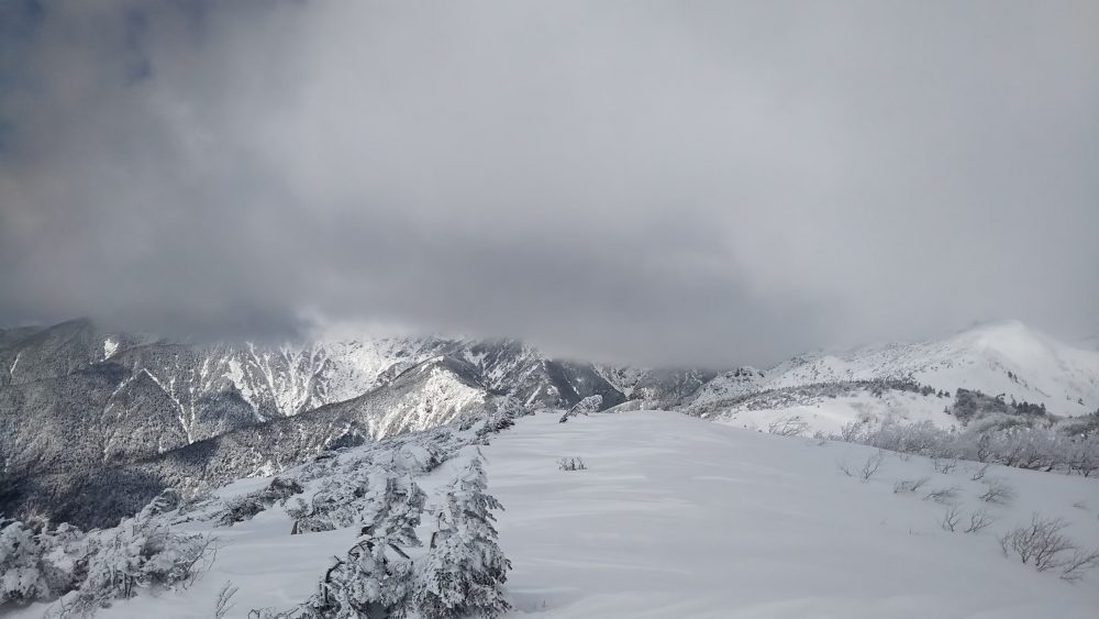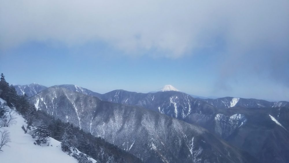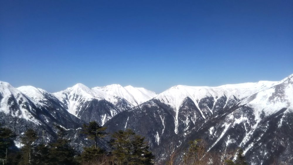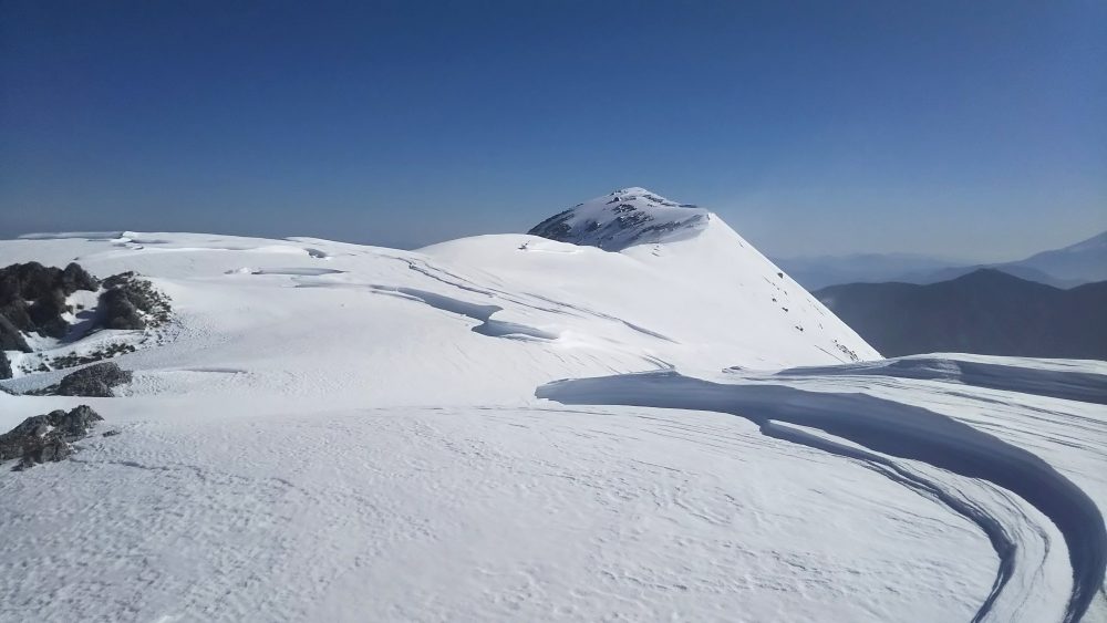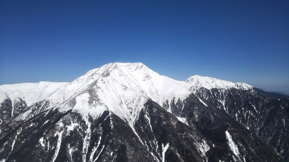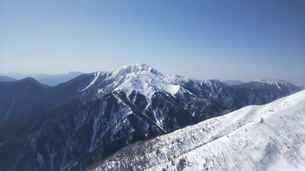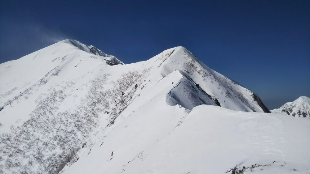 赤石岳側からの風が強く、リッジの左右で雪面の硬さが全く違うので歩くのが大変。