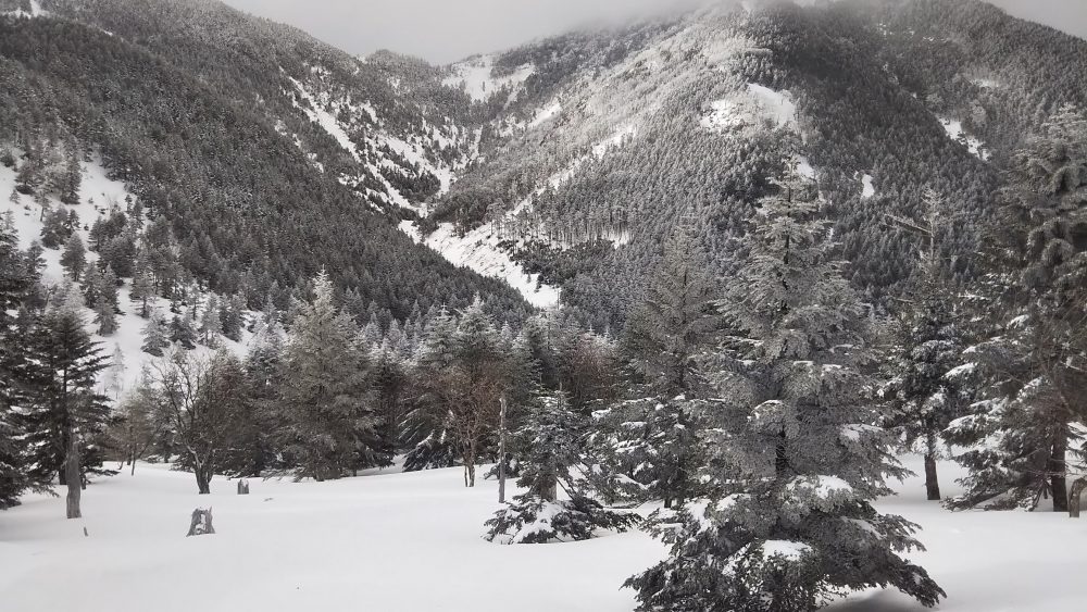 今回は凍結していませんでしたが、場合によっては沢をザブザブ渡った方が安全かもしれません。判断は慎重に。