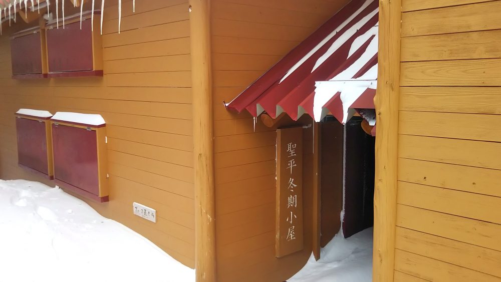 4時間45分で茶臼小屋到着。雪、風とも強くなってきたので冬季小屋にお世話に。