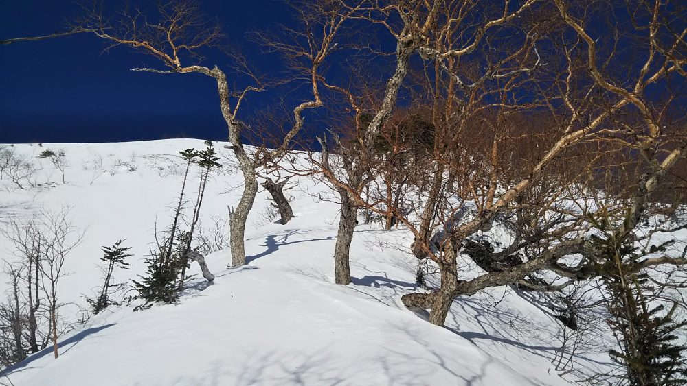 しかも雪の状態も良くなく滑り落ちないように要注意。