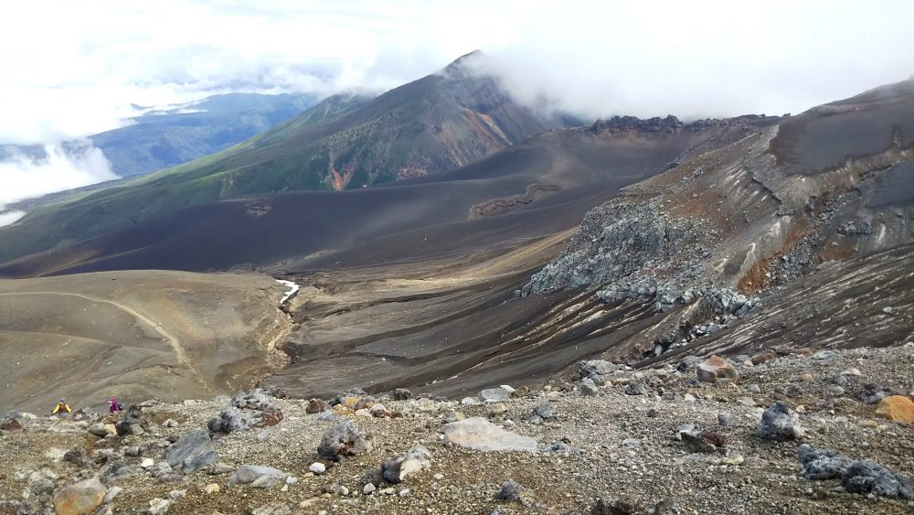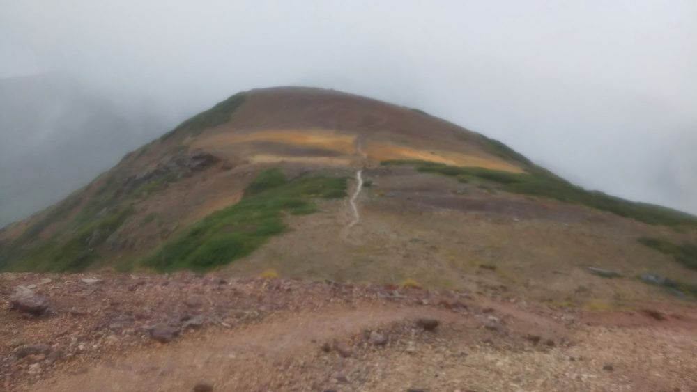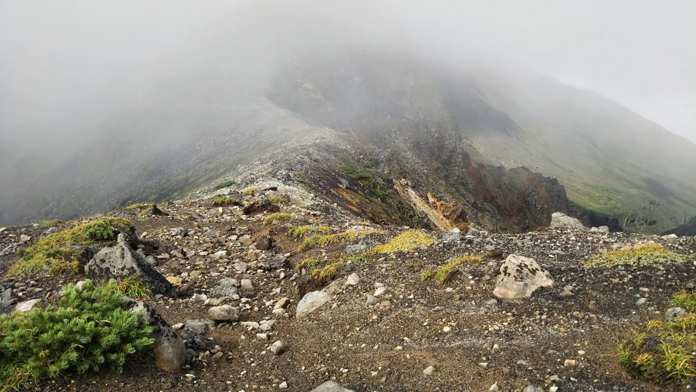 美瑛岳への登りも急。ガスガスなのでピークはパスして十勝岳へ。