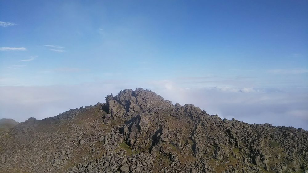 山頂は一瞬の青空。あとはガスガス。
