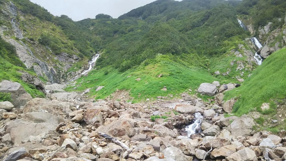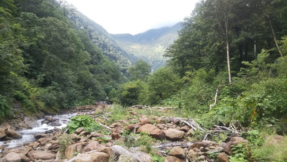 渡渉を繰り返し、左岸の巻き道を使いながら標高を上げていきます。