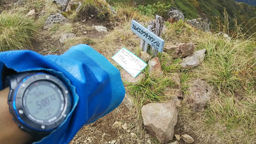 山頂目前で時計を見たら5時間切れそうだったので最後の登りで少しペースを上げ、