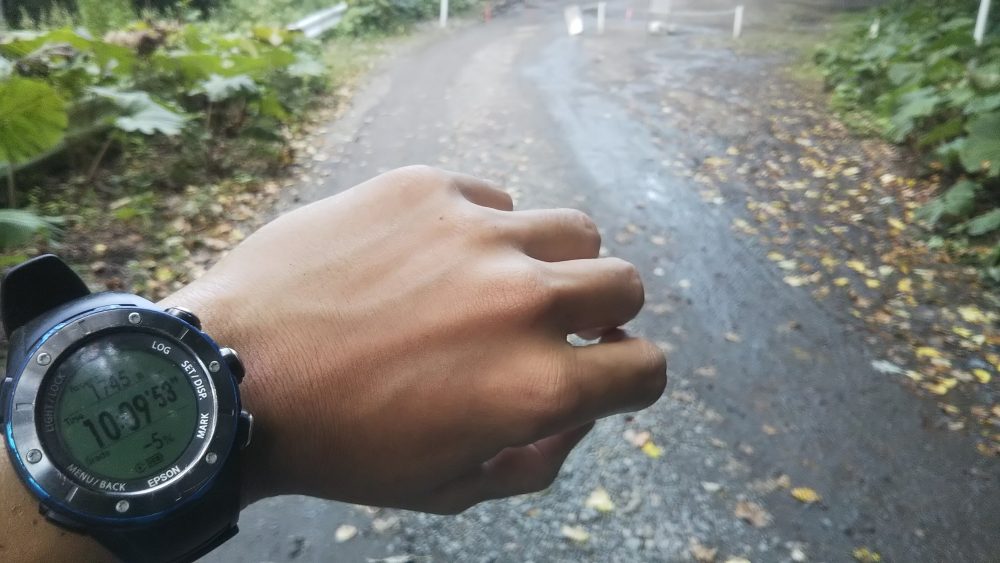 最後の林道はキロ4分台で走ってトータル10時間10分で無事到着。