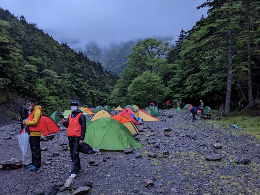 到着して自分のシェルターを張り、早速選手が到着してくると後は夜までひたすら露営チェックです。