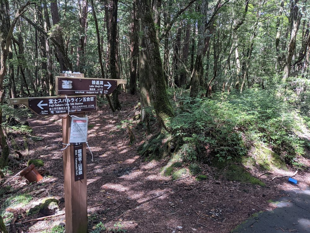 精進湖登山道は約18kmあり、登山道には結構大きめの石が多くそれほどスムーズには走れません。