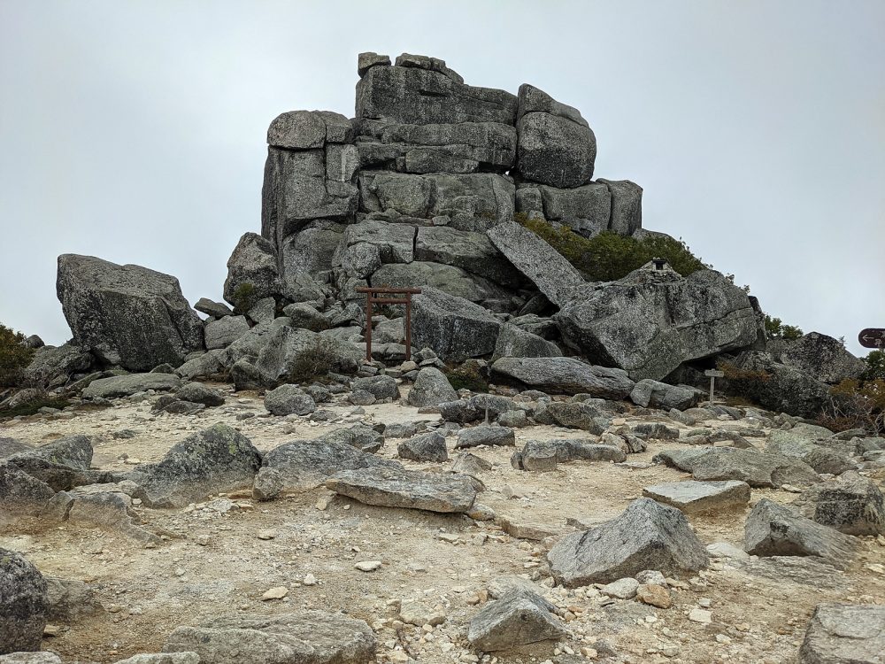 15時過ぎに金峰山到着でホッと一息。ガスが出てきましたが雨は降らず風も弱く涼しいです。