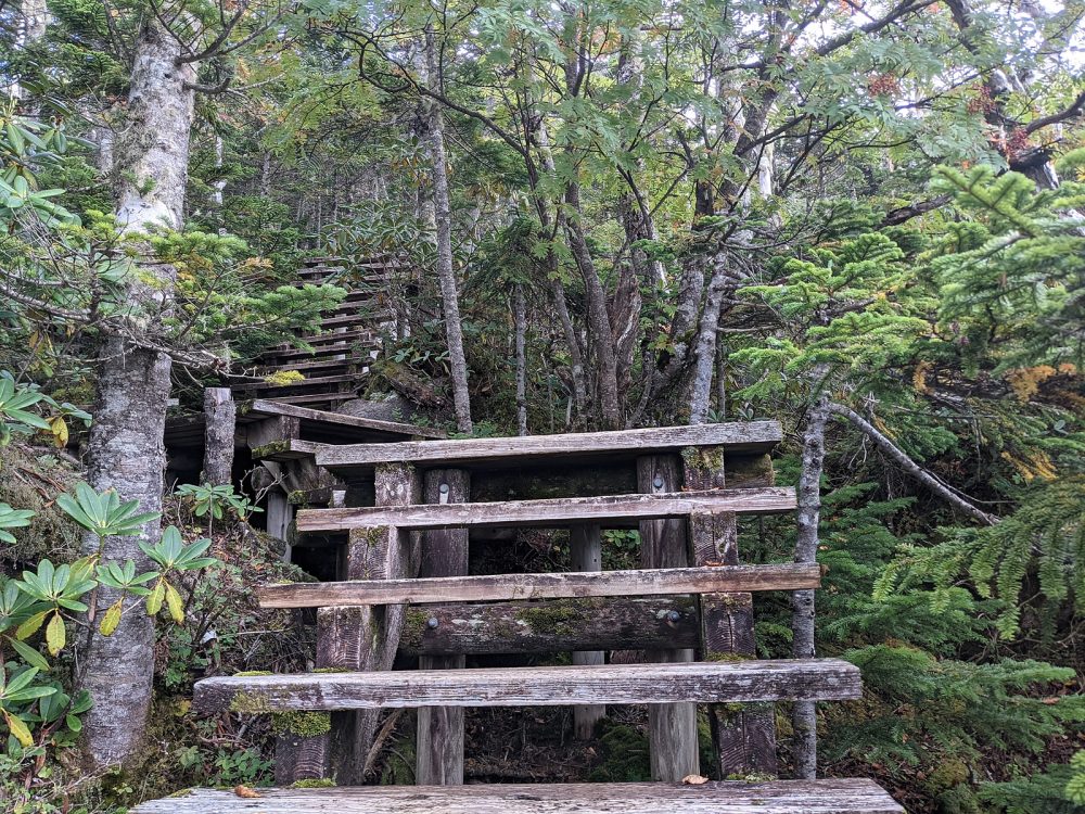 木段をよいペースで登り、国師ヶ岳には16時45分。ここもすぐ先へ。