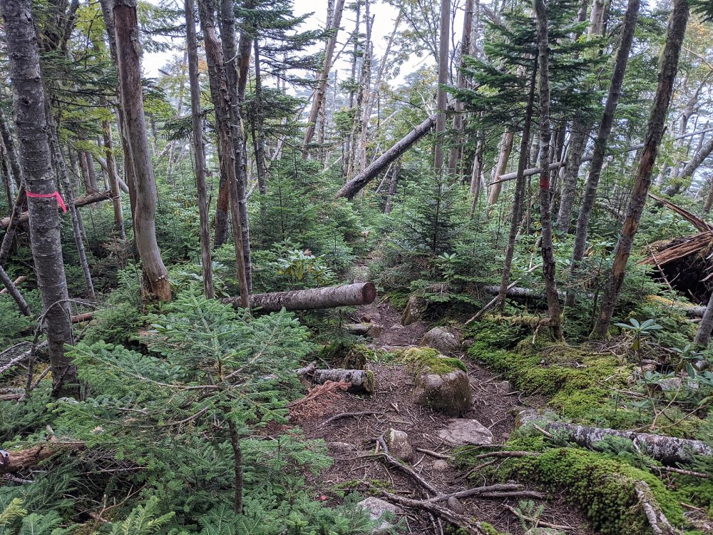「槍」から先は少しずつトレイルが見え始め、少し前に笹が刈られたことが分かります。