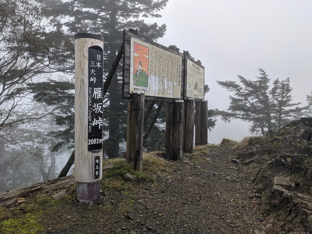 雁坂嶺には1時間10分で到着、まずまず。雨は止みました。
