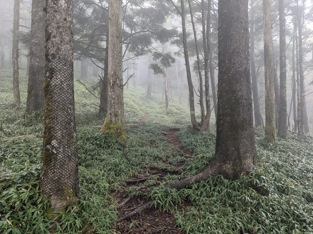 ここからが笹漕ぎ区間。かなり笹が両サイドから出ていて地面が見えないところ多数。