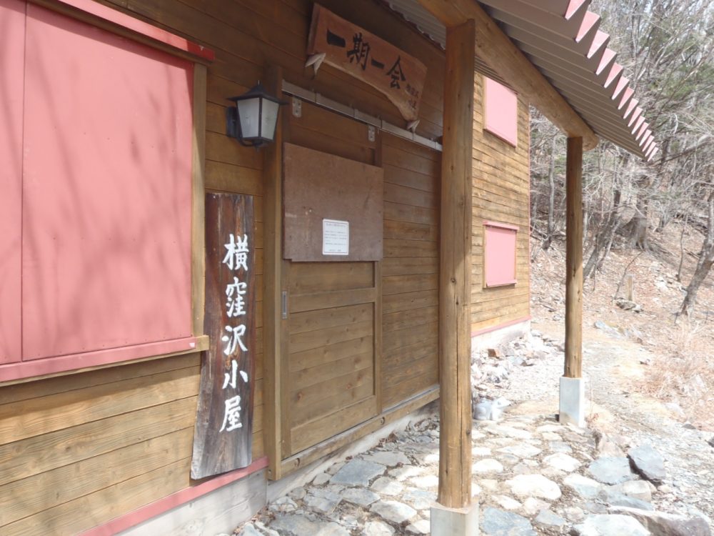 横窪沢小屋への下りは凍結していてチェーンスパイク装着。