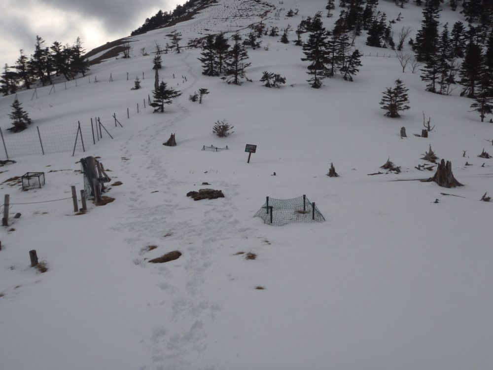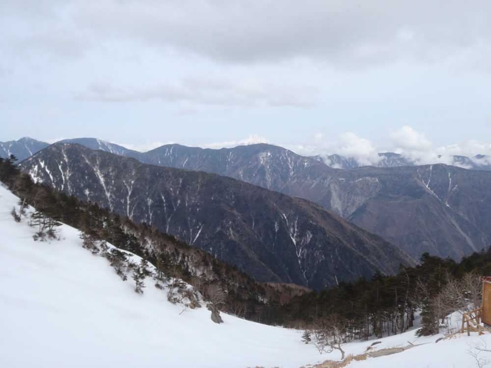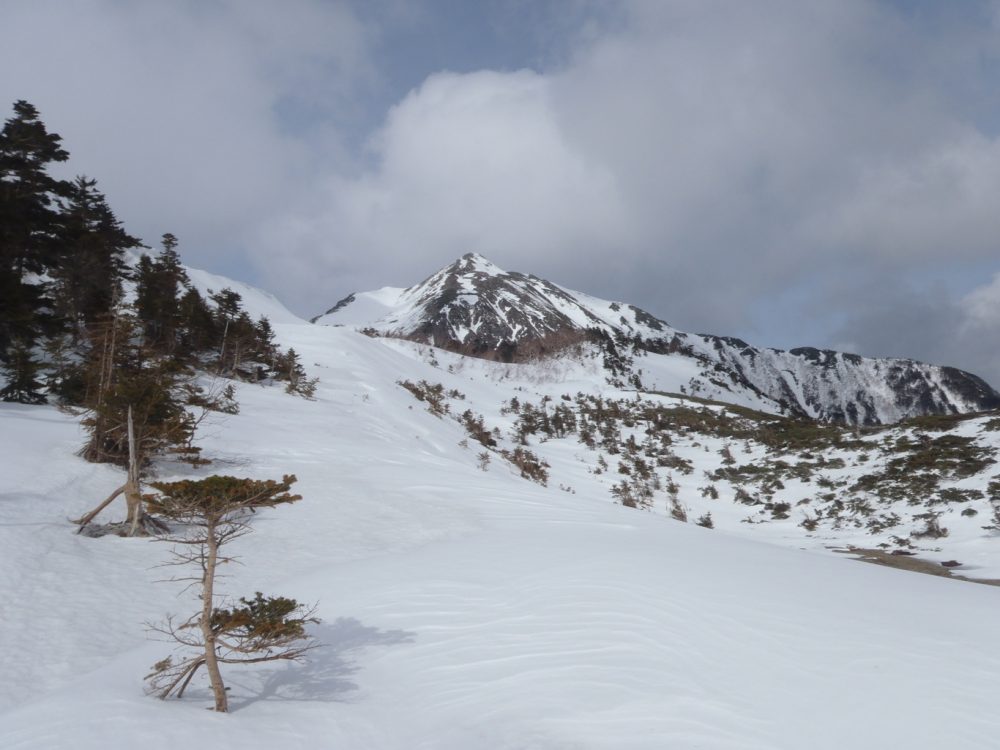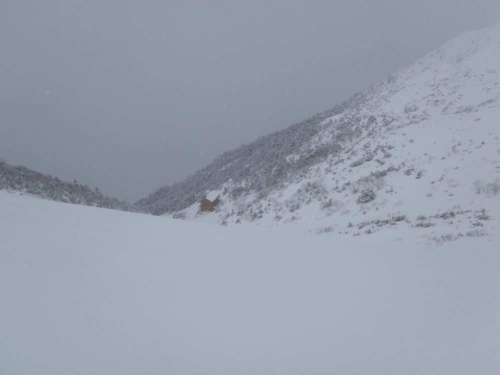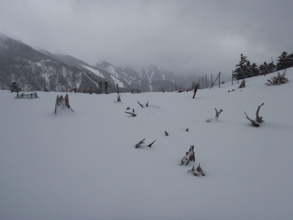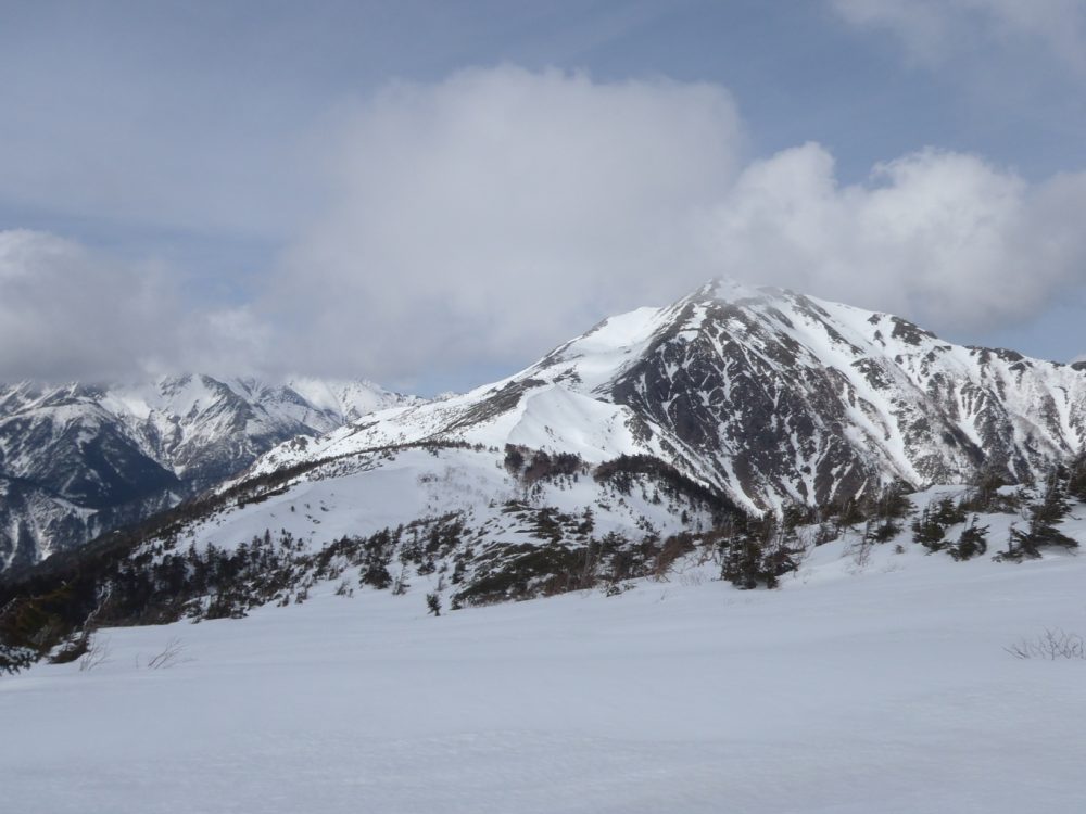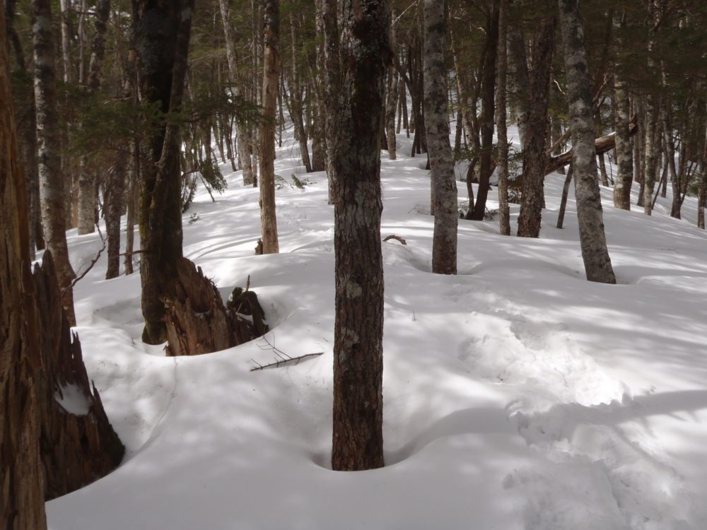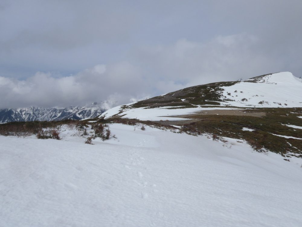 上河内岳からの下りも昨日は雪が無かったところが一面雪原。