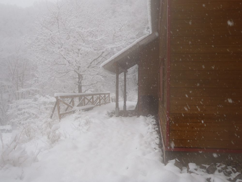 夜中から雪が降っていて20cmくらい積もった感じ。