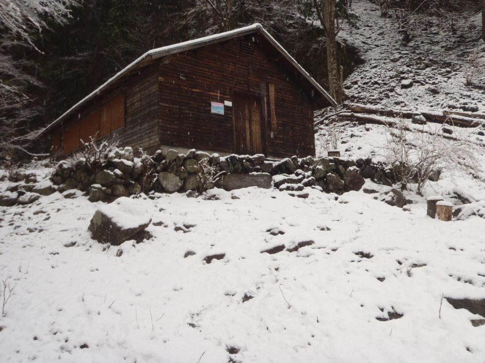 トレランシューズとチェーンスパイクに換装しウソッコ沢小屋まで。