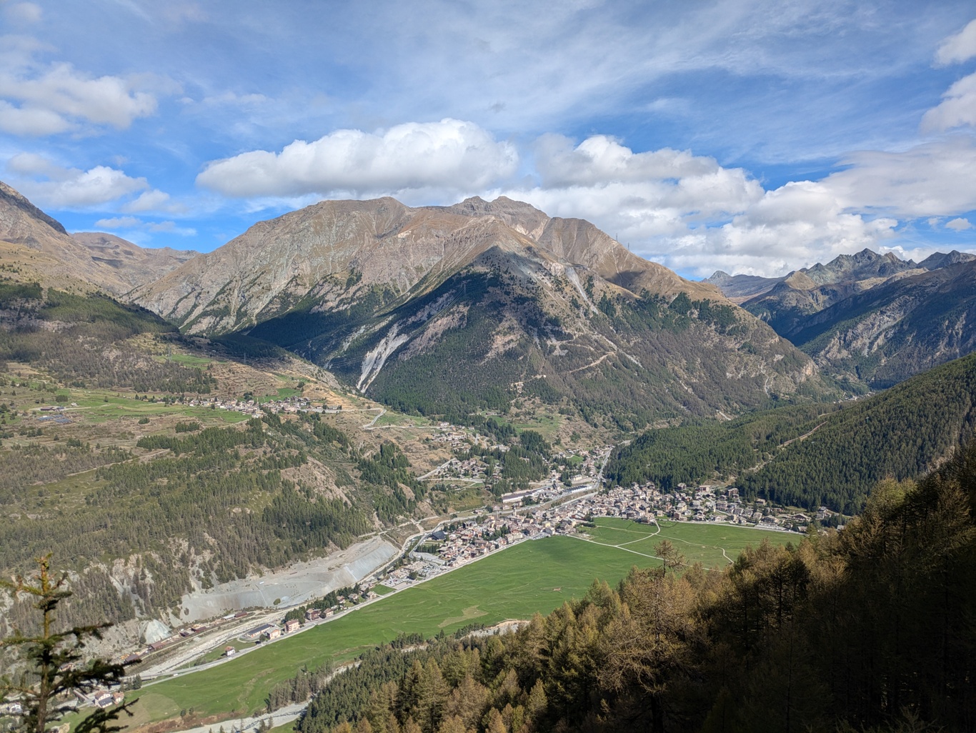 Cogne手前のトレイルから街を見下ろす