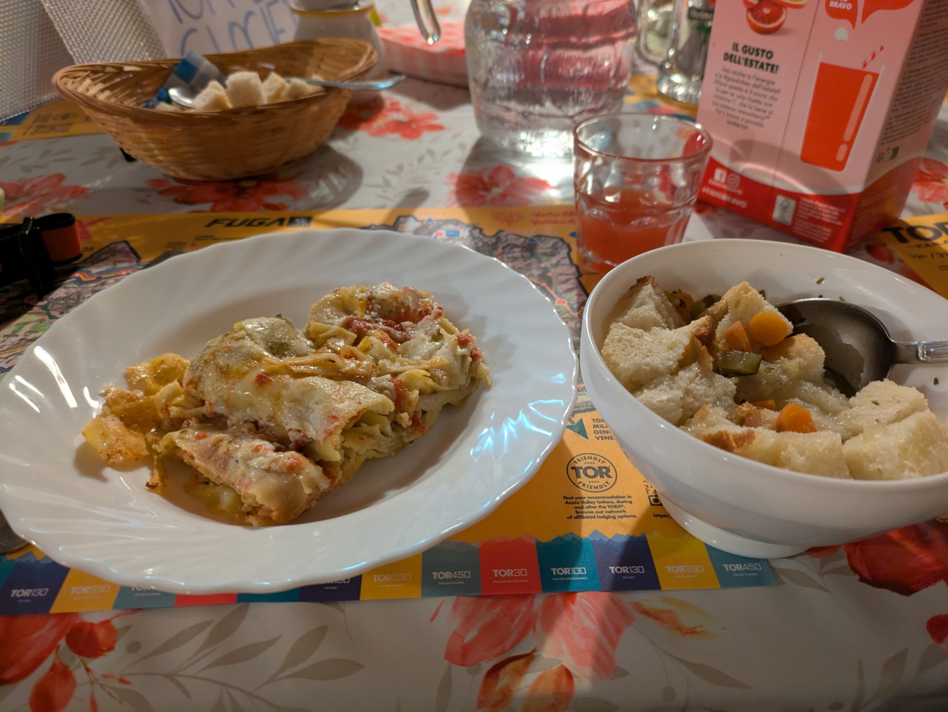 ラザニアと野菜スープにパン