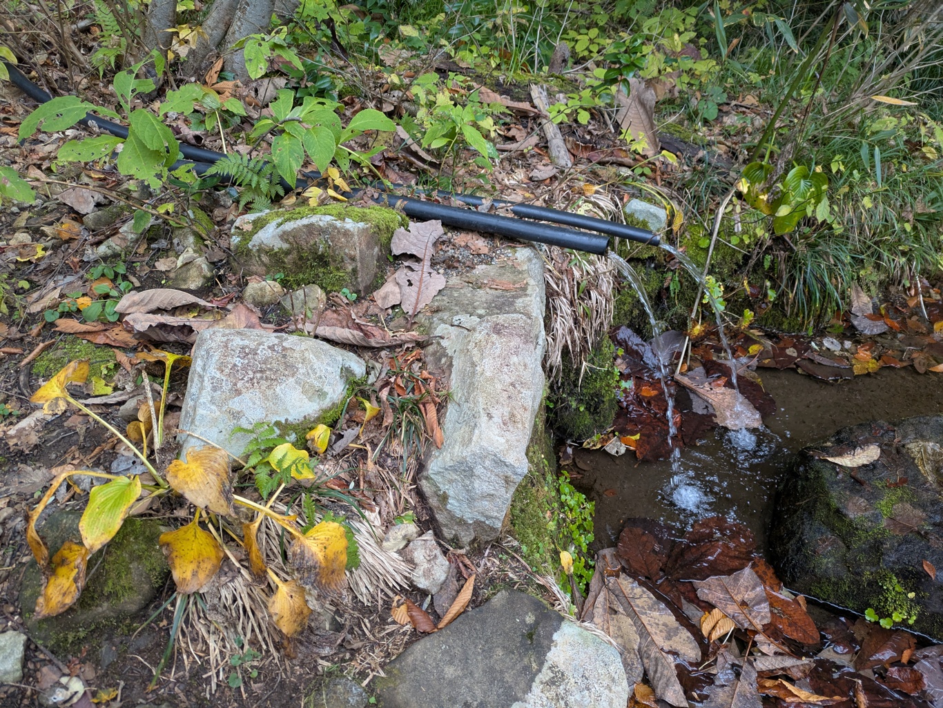 登山道に入ってすぐ水が汲めるので1リットル補給。
