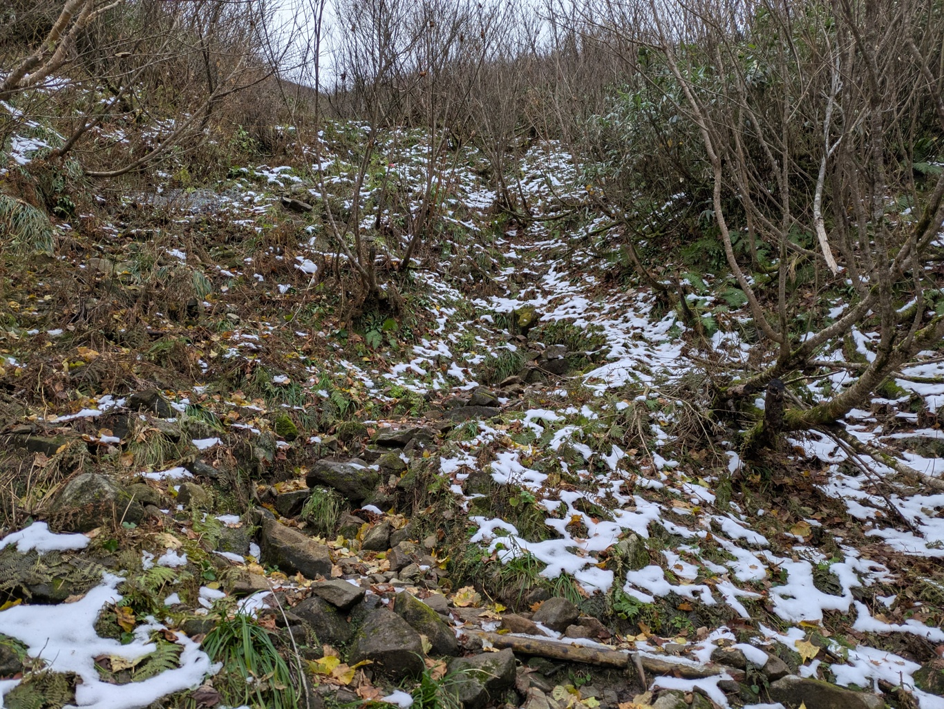 この週の前半に初冠雪となり、もう一つ当初から考えていた戸隠→あまとみトレイルルートに変更です。