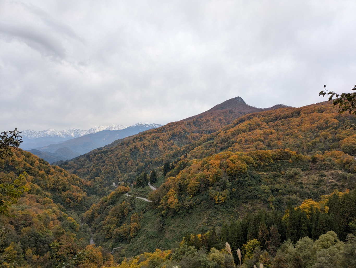 奥の方には白馬方面が真っ白になっているのが見えます。