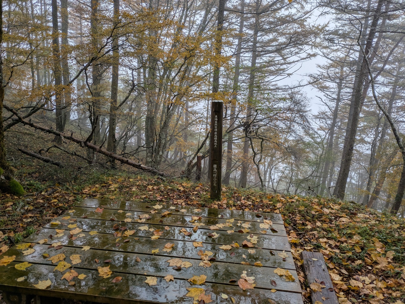 途中から雨が降り出し、中腹からはけっこうな風雨。