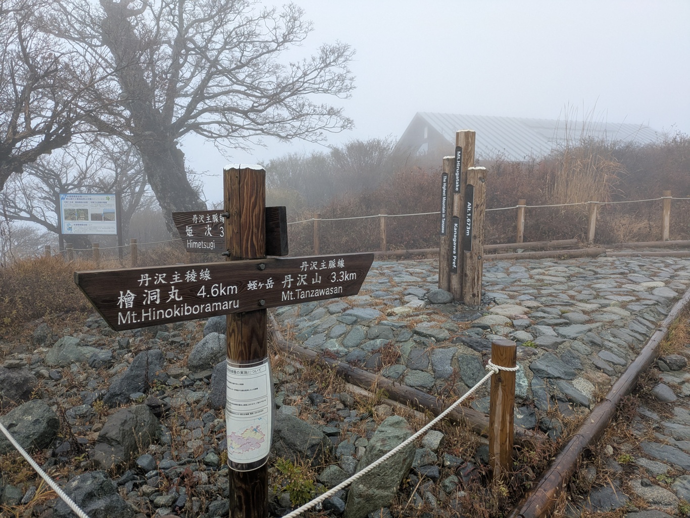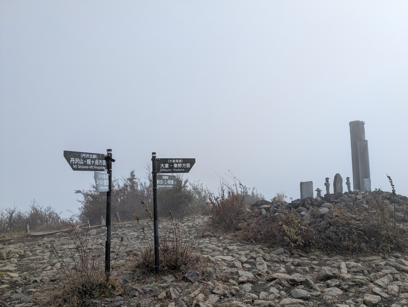 稜線では一気にビショビショになり、ガスガスで視界のない丹沢主稜線を、