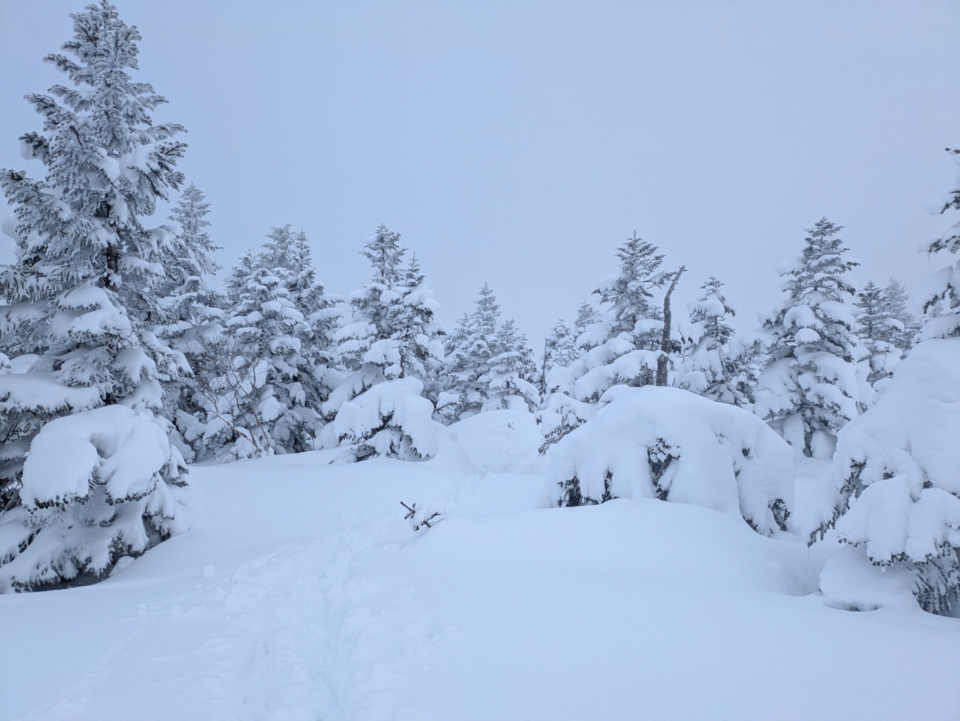 新雪で沈むなか標高差250mくらいでこの日は終了。