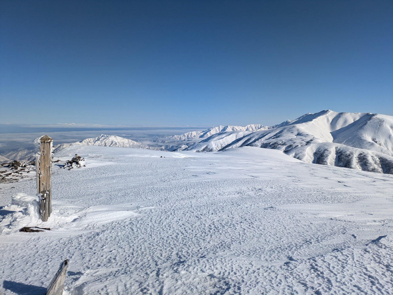 1時間50分で北ノ俣岳山頂に到着。素晴らしい景色。