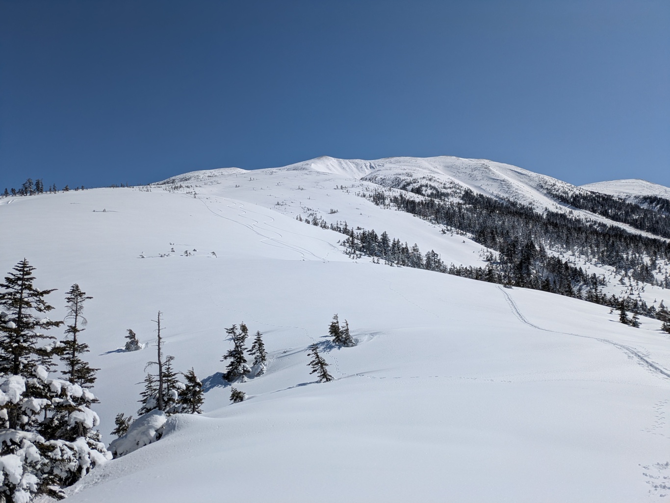 標高2,450mあたりからは極上のパウダーとちょうどいい傾斜のオープンバーン。