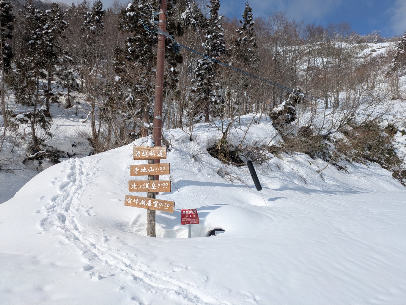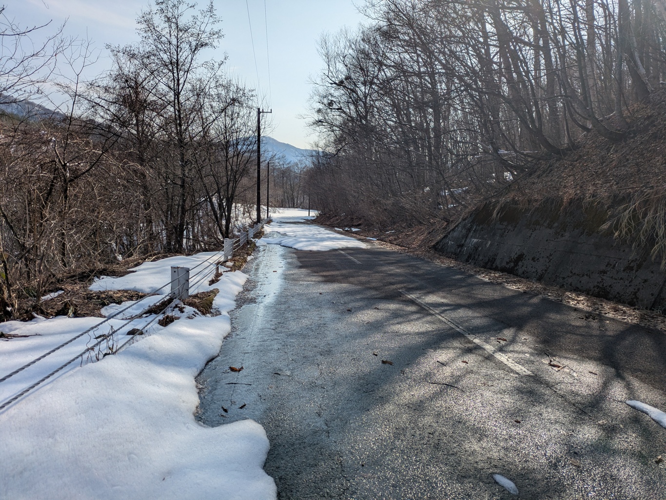 林道はほぼスキーの自動運転で、最後の方は雪切れが4か所ほど。
