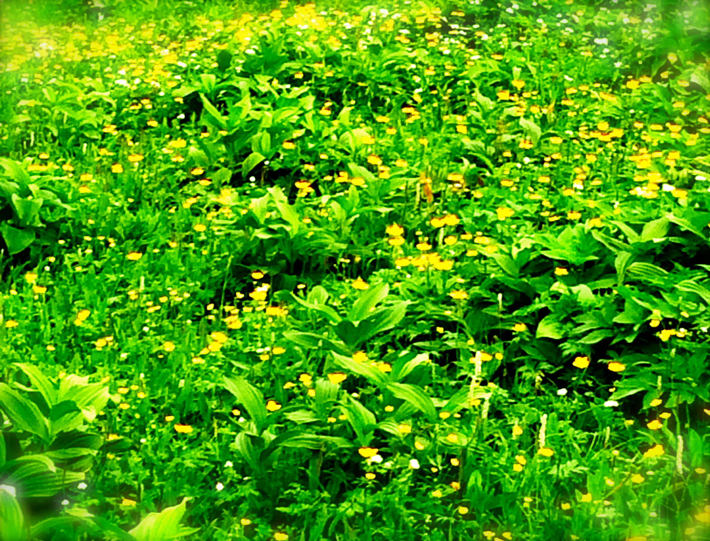 三伏小屋の手前は雨量が多いせいか、シダやコケ類の豊かな植生が広がる。そして峠を超えて、森林限界が近くなると、南アルプスならではの高山植物の花畑が広がる。