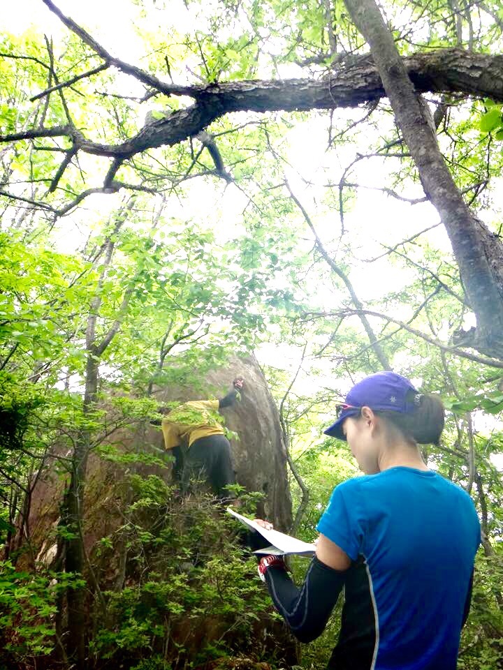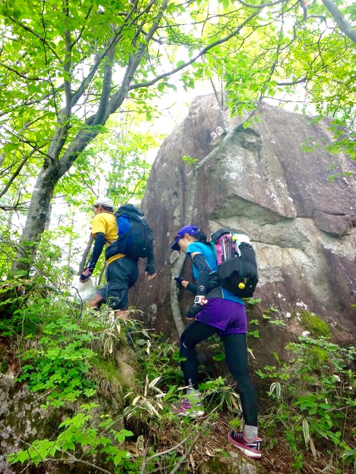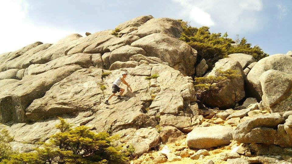 大弛峠から金峰山までは登山客も多く、一歩も走らず早歩きで。五丈岩は御神体のため登らず。登山客ならいいと思うのですが、クライミングをやっている者は登らないほうが無難。見た目ジムの7級ぐらい? ボルタリングのムーブでなくてもリーチと力があれば登れるはずです。