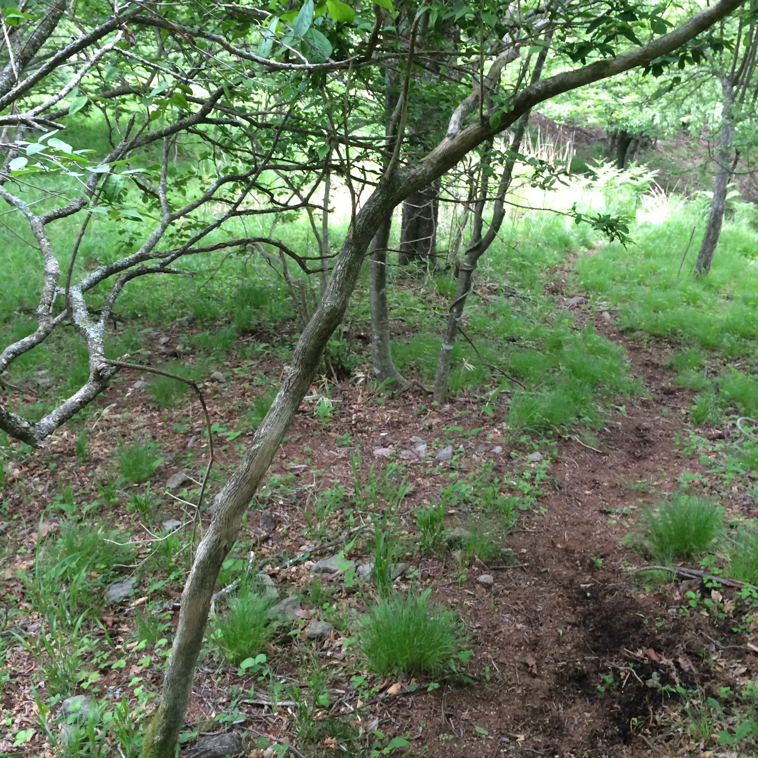 大会要項でのルートの指定は、旺文社の山と高原地図に記載のある登山道および林道となっている。まずはその本ルートを外さなければよいわけですが、「そんなの地図で線状物がトレースできれば簡単だろ」と思うところが落とし穴。旺文社のこの山域の地図は1/50Kですので、ルートのカーブの表現には限度があるし、等高線間隔20mでは地形図としては、大きい尾根、谷を見る程度で分岐での判断材料としては心細い。できれば地理院地図の1/25Kに旺文社の詳細な情報を書き込むのが良いかと思う。ただし、それでも地図上にない踏み跡がいくつもあり、逆に地図にあるルートが深い藪で見えなくなっている。このブログでGPSデータとともに分岐を公開してもよいのですが、これから1ヶ月でまだまだ藪も伸びそうですし、やはり自分で地形図を見ながら試走することをお勧めします。それもまた楽しみの1つだと思うのです。尾根線を外さない、平沢牧場に下らない、スキー場に下らない、ということを念頭におけば、間違えても「あ、巻いているだけかと思ったら、尾根線から遠ざかっている」と気づくはずです。尾根線同士の分岐では地図をきちんと整置すれば問題なし。ナビゲーション競技ではないので、現在地の確定にはスマホのGPS山地図アプリやGPS時計の高度計を補助に(誤差があるのであくまでも補助に)使用するのもよいでしょう。